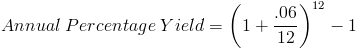 After simplifying, the annual percentage yield is shown as 6.168%.