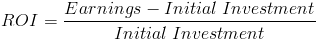 The return on investment formula is used loosely in finance and investing. It can be applied to any form of investment including projects within a corporation, a company as a whole, a personal investment by an individual, and investment in an appreciable asset.