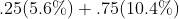 To recap, we have a weight of debt of .25 with an after-tax cost of 5.6%. We also have a weight of equity of .75 and a cost of equity of 10.4%. Putting these variables into the WACC formula shows